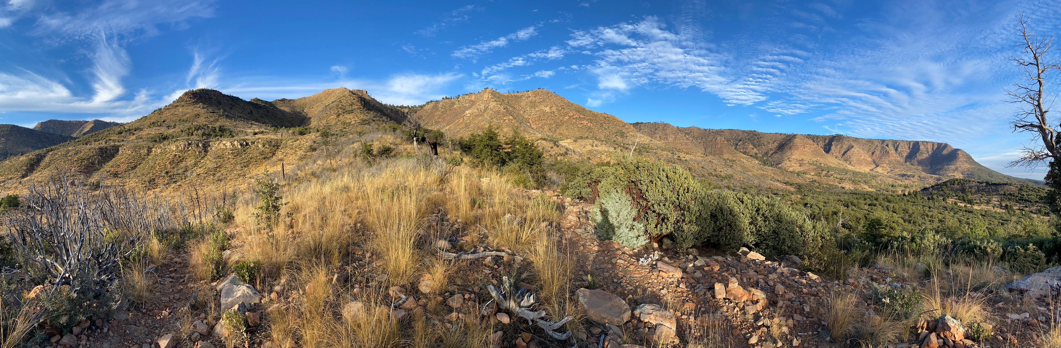Once we got through the first couple miles, though, things opened up and the trail was pretty clear. We also started to see a lot more trail markers (this section is both the Arizona Trail and the Highline Trail) and so were pretty confident we were on the right track. This lasted until about mile 22.5, when we ran right into a fence.